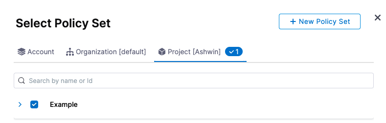 In this example, we'll use an existing policy set. For details on creating a policy set, see Harness Governance quickstart.