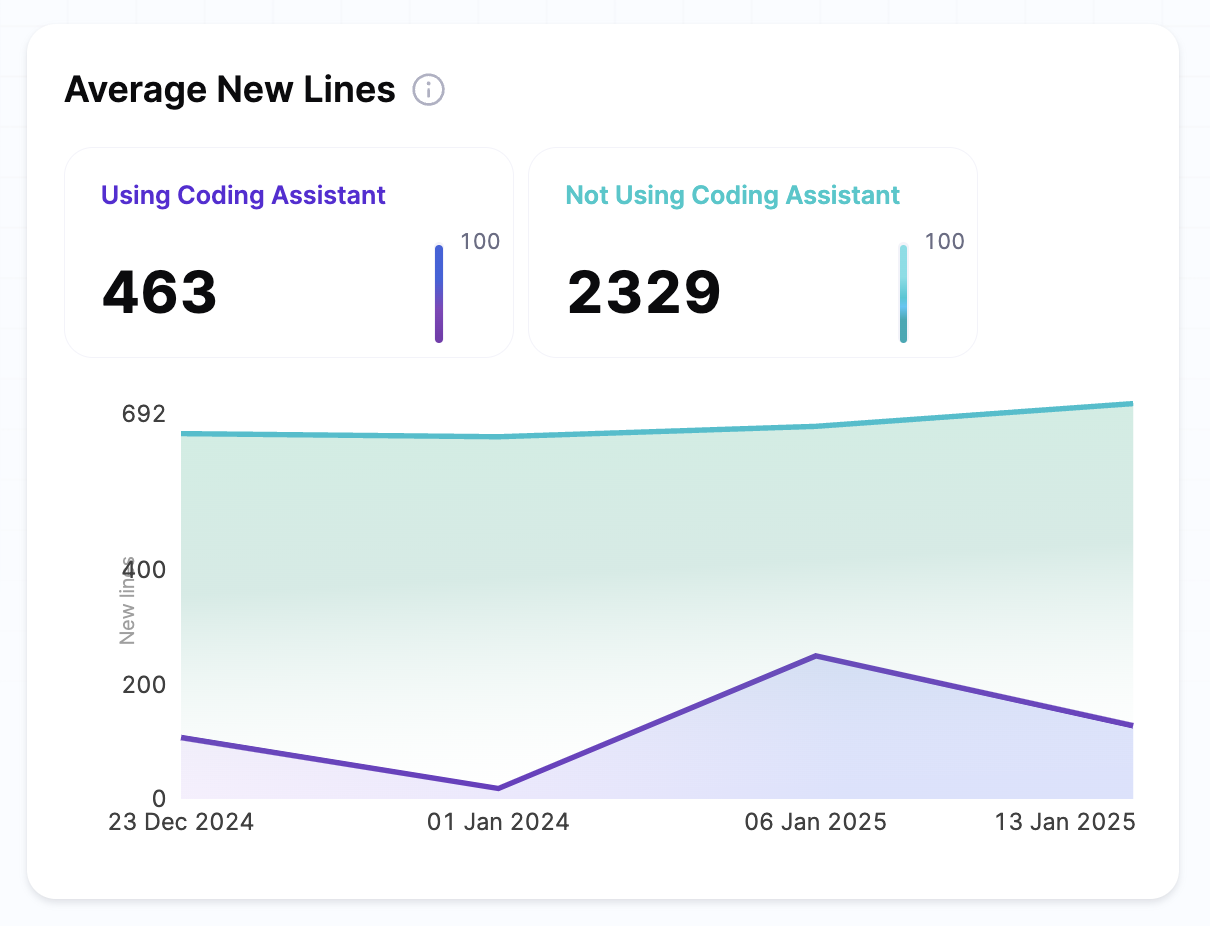 • If non-AI developers add more new lines, it could suggest AI-generated code is more efficient, or that AI developers are making smaller, iterative changes that require fewer new lines.