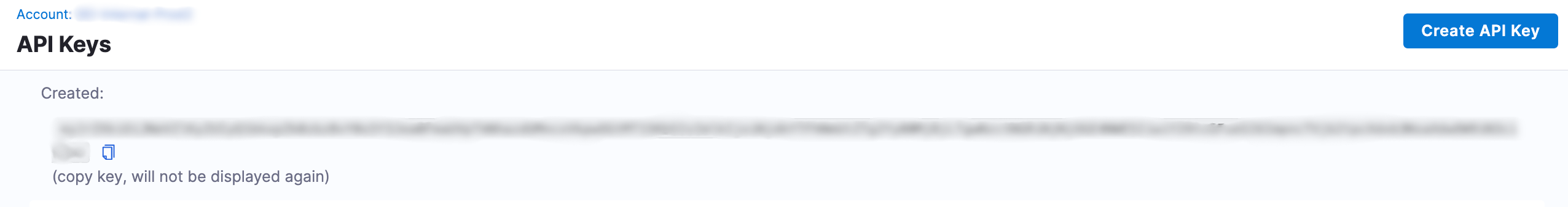 • Click the Create button to generate your new API key.